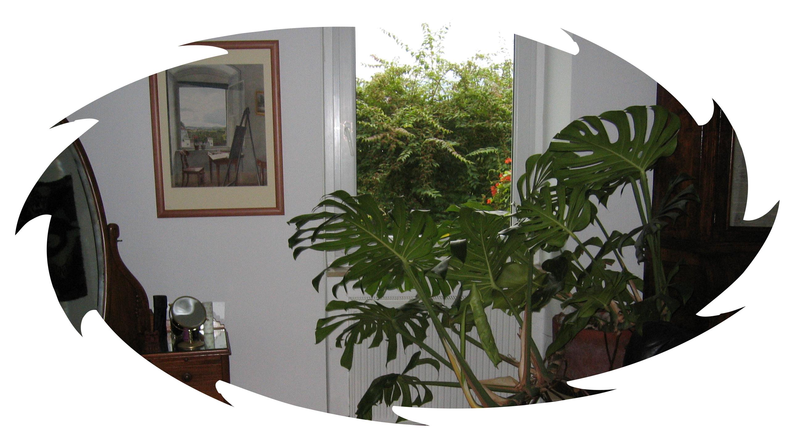 Im Salon und im großzügige Zimmer, in dem Du schläfst liegt Parkett. die grossen Fenster gehen in den Naturgarten.